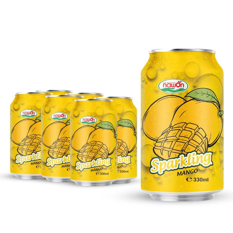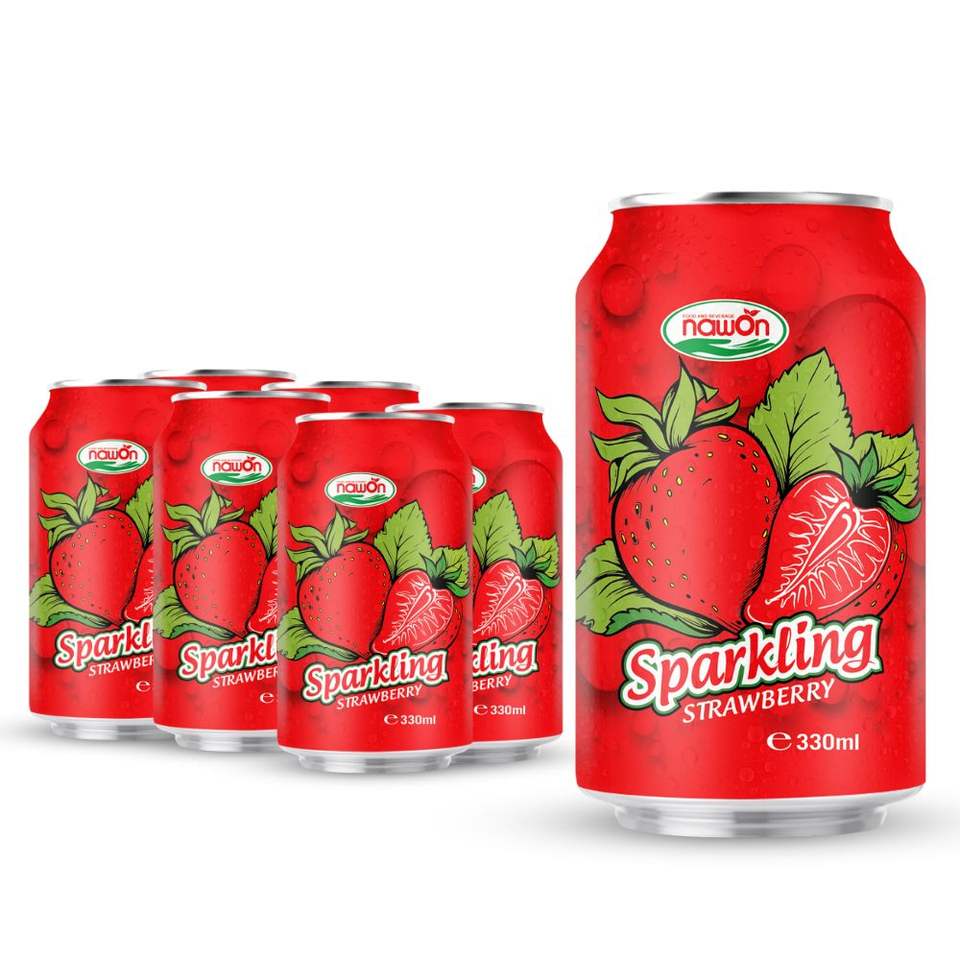 เครื่องดื่มอัดลม น้ำมะม่วงสตรอว์เบอร์รี 330 มล. กระป๋อง น้ำอัดลม NAWON ในเวียดนาม ฮาลาล OEM ODM GMP ISO