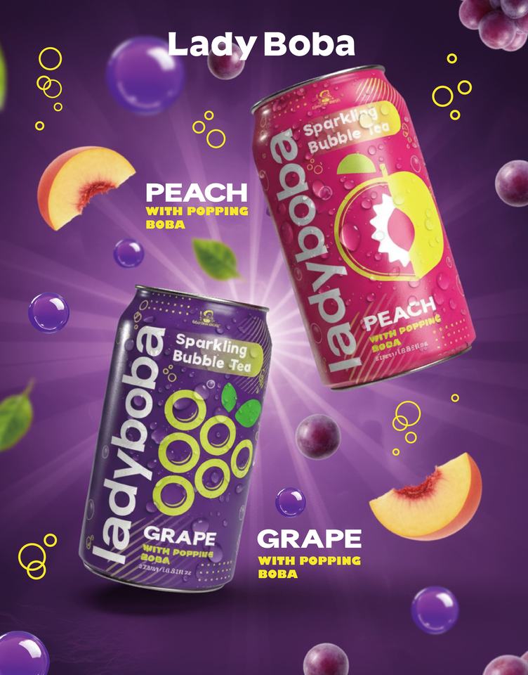 ชาไข่มุกคาร์บอเนตพร้อมดื่ม รสพีชและองุ่น ขนาด 310 มล. แบบกระป๋อง ต้องเขย่าก่อนดื่ม