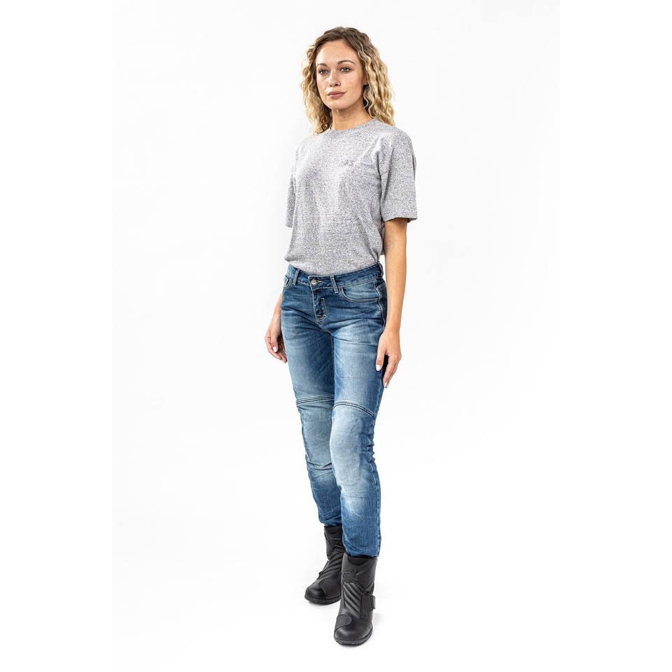 Carburo Torin กางเกงยีนส์มอเตอร์ไซค์ผู้หญิงที่ผ่านการรับรอง CE กับสีฟ้าหิน Aramid เส้นใย38