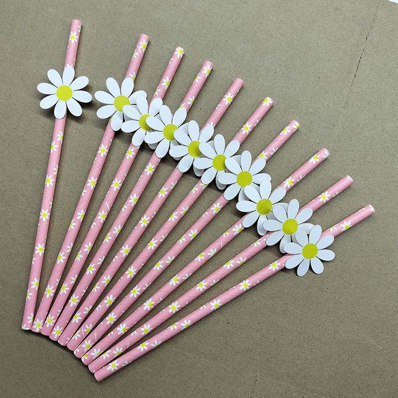 Card Small Flower SUNFLOWER Straight Pipe Disposable Degradable Recycled Biodegradable Dessert Table Cake Cocktail Juice Sugar