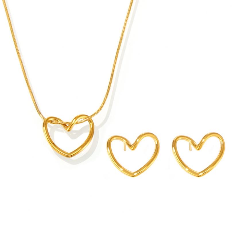 สร้อยคอทองคำแท้ 18K ป้องกันการหมอง พร้อมต่างหูรูปหัวใจ ทำจากสแตนเลสแท้ สำหรับผู้หญิงและเด็กผู้หญิง
