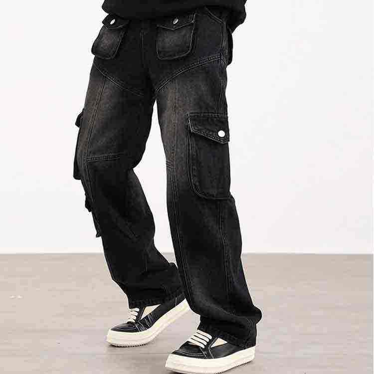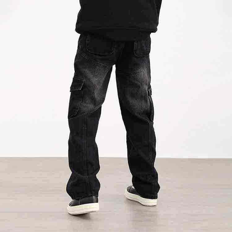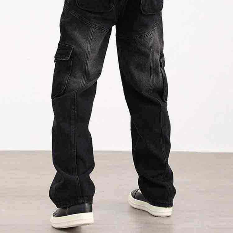 คาร์โก้กางเกงยีนส์เอวกลางตรงกางเกงยีนส์พอดีตัวปกติมีกระเป๋าพิเศษใส่ลำลองแนวสตรีทแฟชั่นทันสมัย