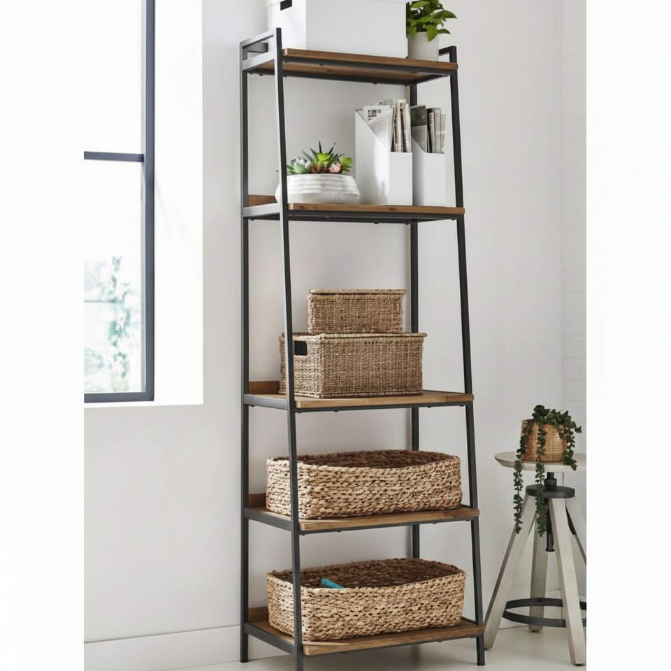 ตู้หนังสือ Carine 5 ชั้น ทำจากโลหะและ MDF ขนาด 180x70x50 ซม. ดีไซน์โดดเด่น
