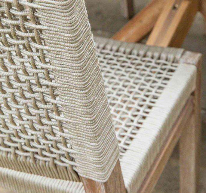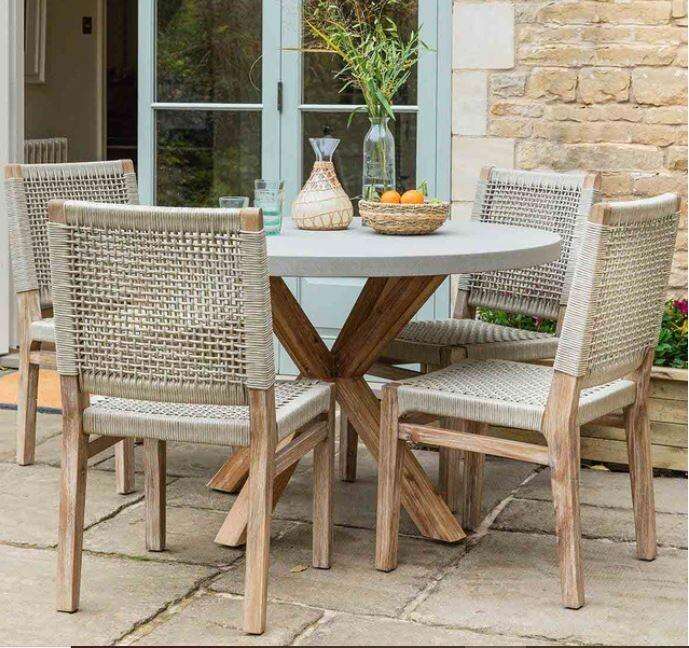 ชุดโต๊ะรับประทานอาหารกลางแจ้งทรงกลมไม้เนื้อแข็ง 4 ที่นั่ง Carla พร้อมเชือกถักสำหรับใช้งานกลางแจ้ง