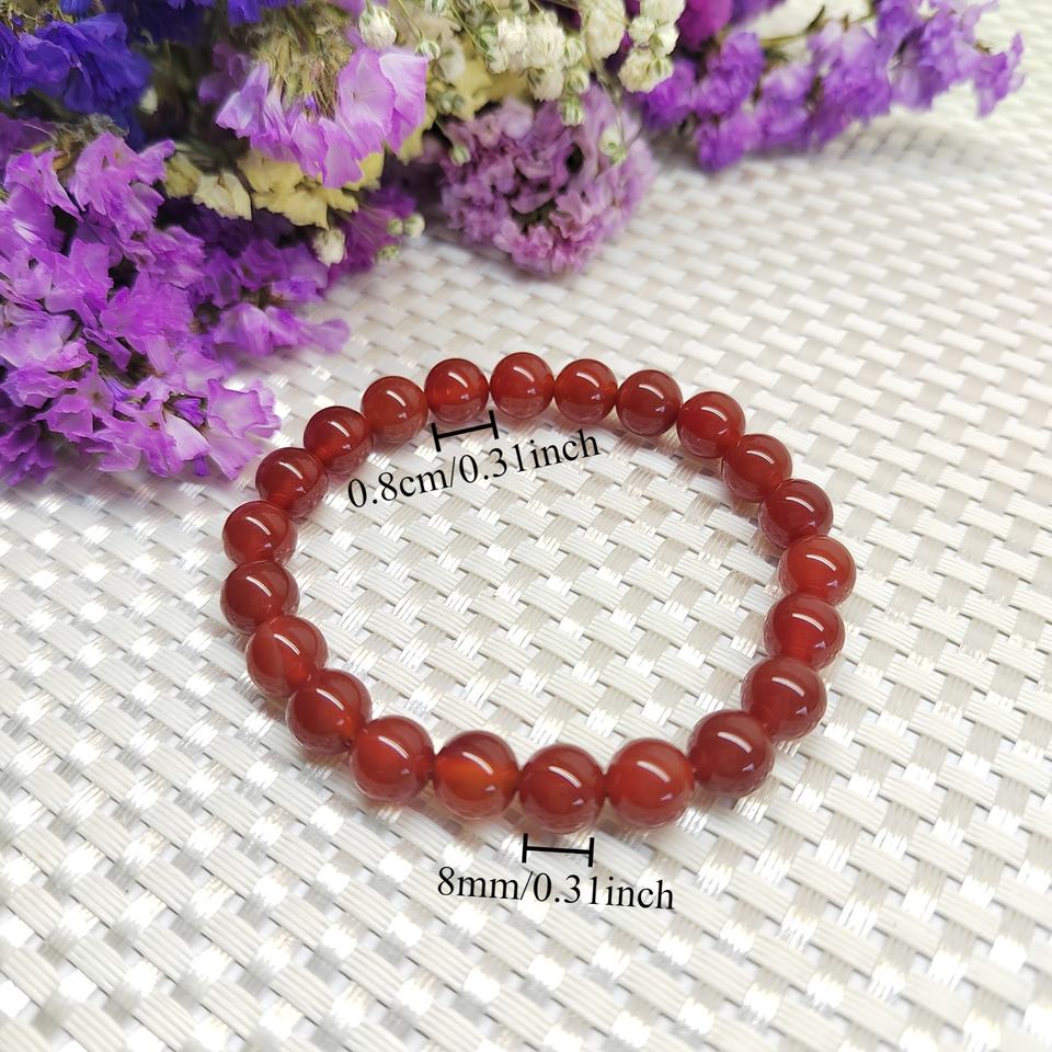 กำไลคาร์เนเลียน หินอาเกตสีแดงธรรมชาติ กำไลลูกปัดกลม สำหรับผู้หญิง ผู้ชาย กำไลคริสตัลพลังบำบัด ใส่ได้ทุกวัน ของขวัญ ขายส่ง