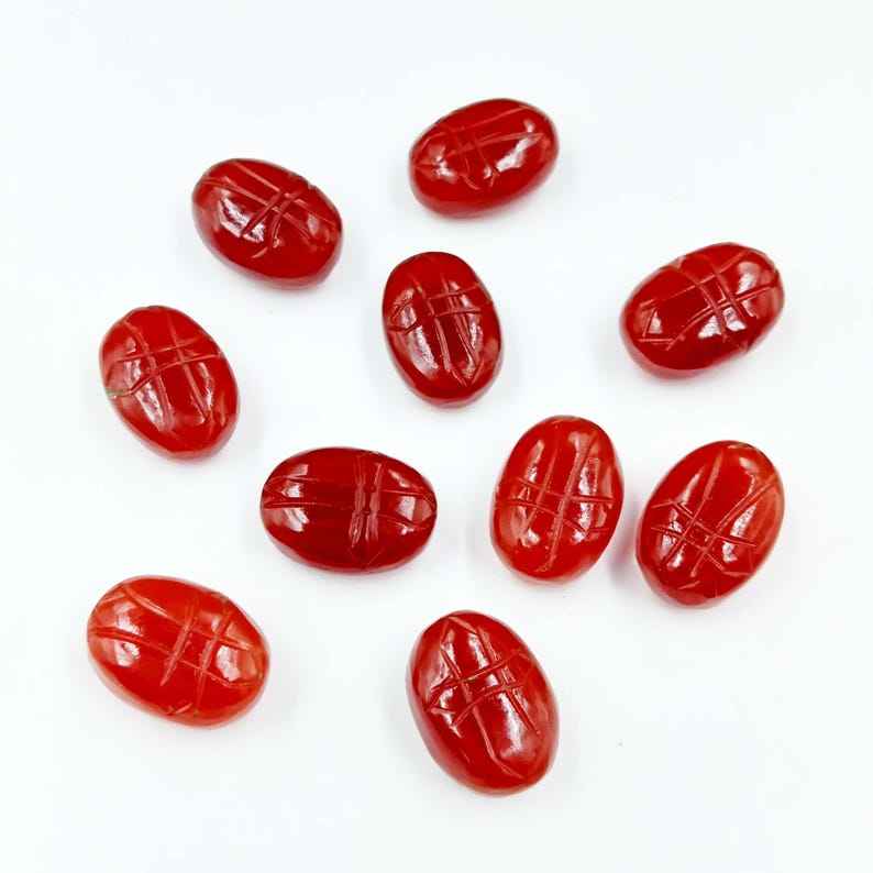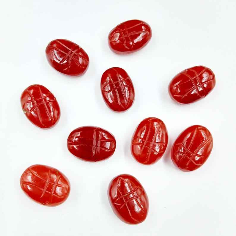 ลูกปัดพลอยคาร์เนเลียนรูปไข่แกะสลักลายแมลง ลูกปัดหลวมสำหรับทำเครื่องประดับ ขายส่ง