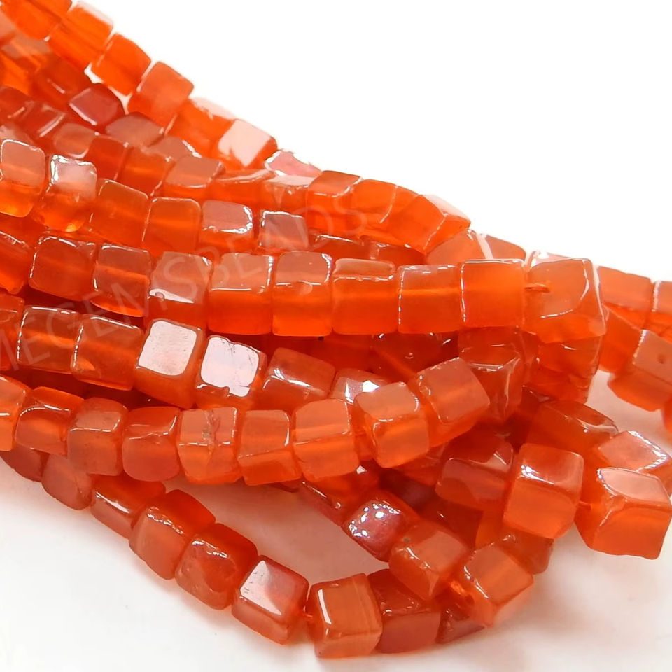 ลูกบาศก์คาร์เนเลียนขัดเรียบ-รูปทรงสี่เหลี่ยมจัตุรัส-ทำด้วยมือ-หินธรรมชาติ-ขนาด 16 นิ้ว-สำหรับทำเครื่องประดับ