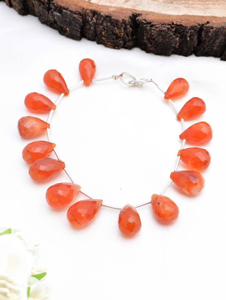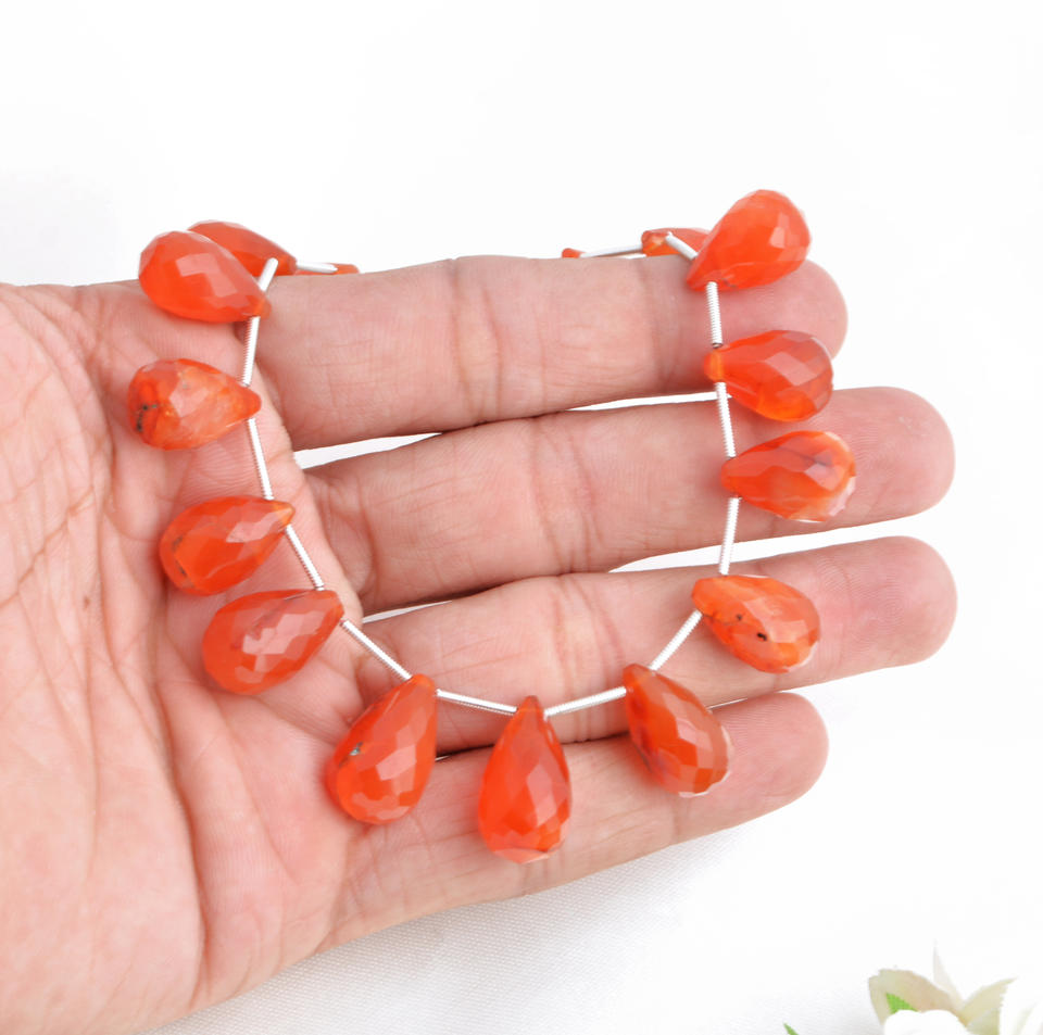 ลูกปัดพลอยคาร์เนเลียนทรงลูกแพร์เจียระไน 8 นิ้ว สำหรับทำเครื่องประดับอัญมณีชั้นดี