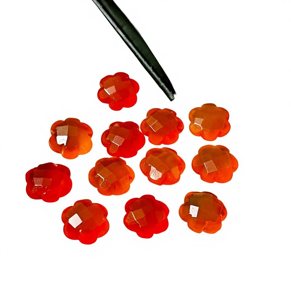 ลูกปัดคาร์เนเลียนรูปดอกไม้ทรงบริโอเล็ต ลูกปัดคริสตัลคาร์เนเลียนธรรมชาติรูปดอกไม้ ลูกปัดพลอยทำมือสำหรับทำเครื่องประดับ