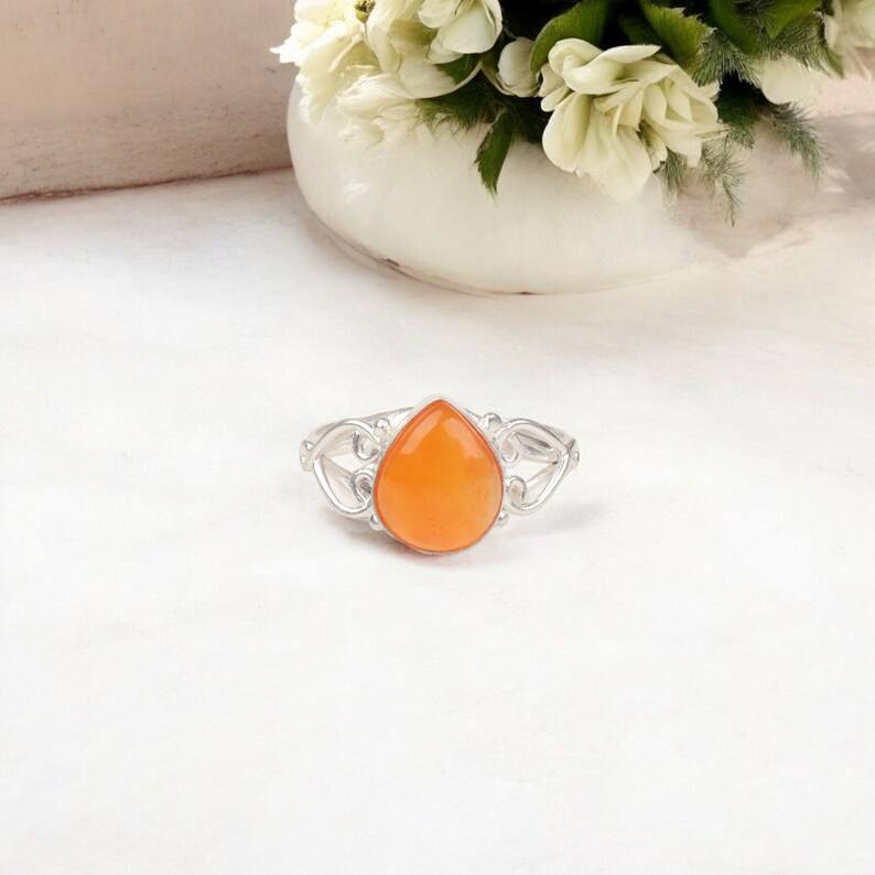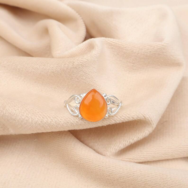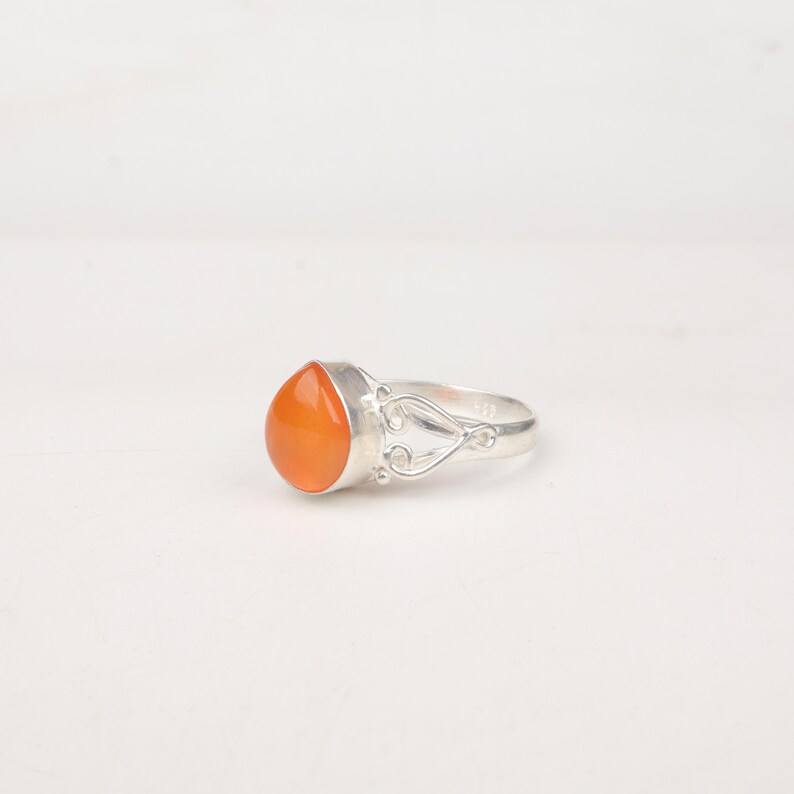 แหวนหัวใจคาร์เนเลียนทำด้วยมือ 925 เงินสเตอร์ลิงเครื่องประดับอัญมณีแหวนหรูหราของขวัญสำหรับผู้หญิง