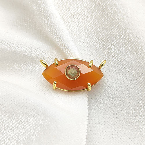 จี้ห้อยคอพลอยคาร์เนเลียนลาบราดอไรต์ทรงมาร์คีส์ขนาด 15x20 มม. เจียระไนเหลี่ยมเพชรพลอย สำหรับงานหมั้น ทำจากเงินแท้ 925 ชุบทอง
