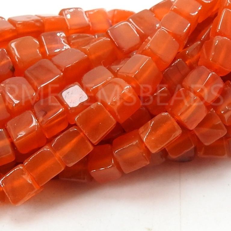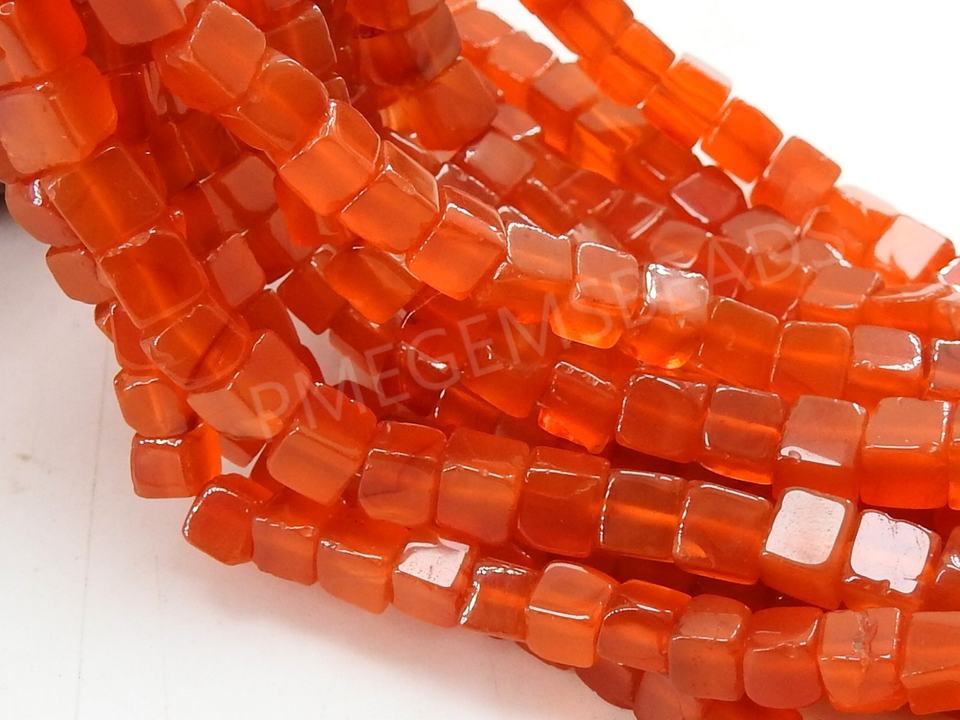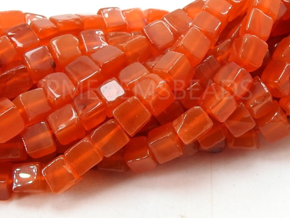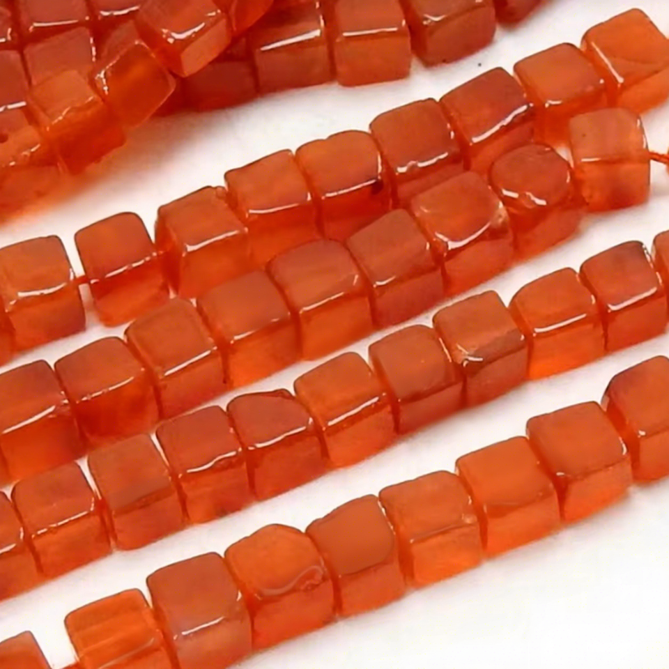 หินคาร์เนเลียนสีส้มทรงลูกบาศก์ ขัดเรียบ ทำมือจากหินธรรมชาติ ความยาว 16 นิ้ว สำหรับทำเครื่องประดับ