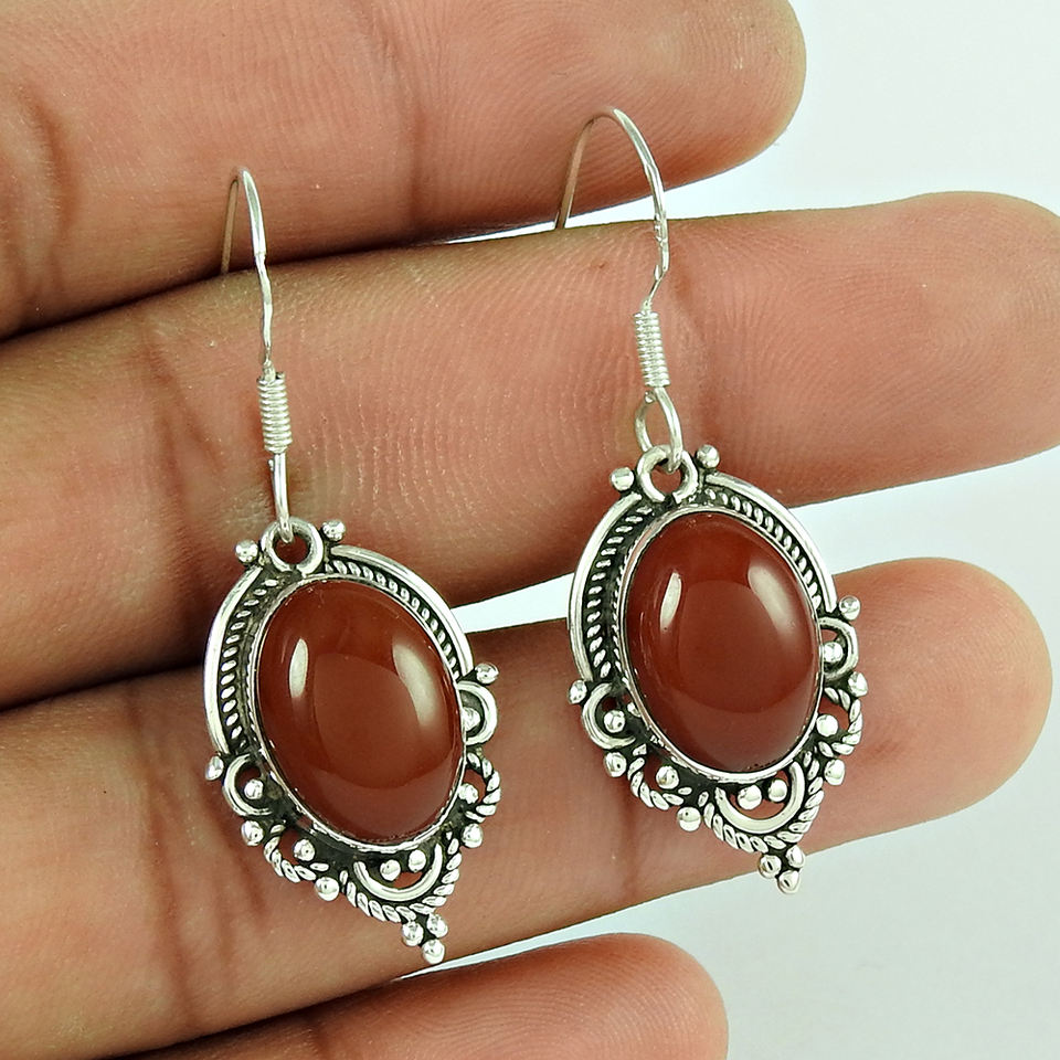 เครื่องประดับอัญมณีคาร์เนเลี่ยนธรรมชาติต่างหูครบรอบของขวัญสำหรับผู้หญิง925เงินสเตอร์ลิงต่างหูช่างฝีมือรูปไข่