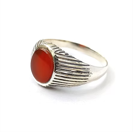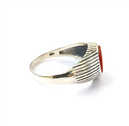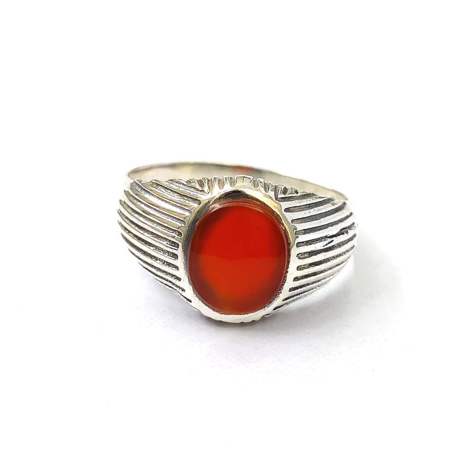Oval shape Carnelian Gemstone In Sterling Silver Unisex Ring With Trendy Design Easy to Wear Customization