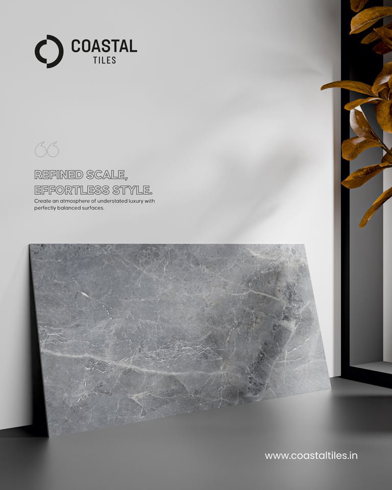 กระเบื้องพอร์ซเลนคาร์นิโก้เกรย์ ขนาด 24x48 นิ้ว ผิวเคลือบโกลสเตอร์ ดีไซน์ทันสมัย หนา 9 มม. เกรด AAA คุณภาพพรีเมียม กระเบื้องวิทริฟายด์ กระเบื้องลายชายฝั่ง อินเดีย