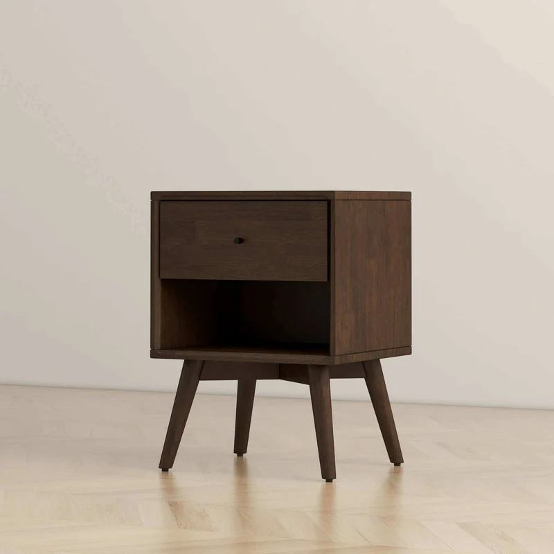 โต๊ะข้างเตียงสไตล์โมเดิร์นกลางศตวรรษ รุ่นแคโรไลน์ ทำจากไม้สักแท้สีน้ำตาลเข้ม สำหรับเฟอร์นิเจอร์ห้องนอน