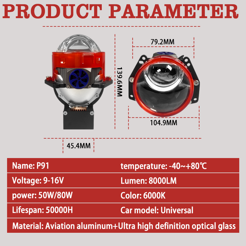 Carolyn โปรเจกเตอร์เลเซอร์แอลอีดี30000LM 3นิ้ว80วัตต์สว่างพิเศษพร้อมรุ่น6000K อุณหภูมิสีกอล์ฟ