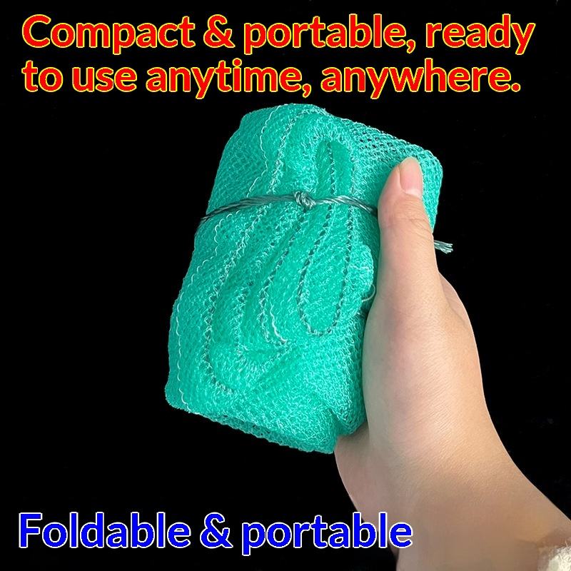 ถุงตาข่ายตกปลาคาร์พพร้อมเชือก-โพลีเอทิลีนสีเขียวแบบพับได้แบบพกพาสำหรับใช้ในลำธารน้ำจืด