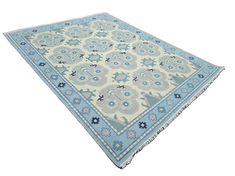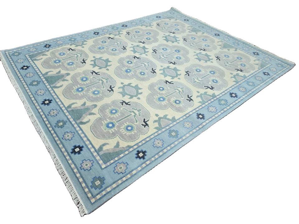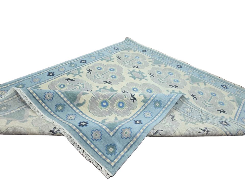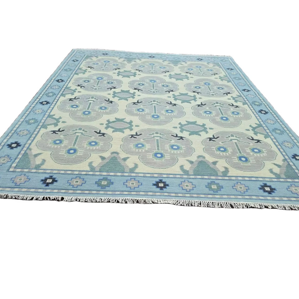 พรมปูพื้นขนสัตว์แบบทันสมัยงานทำมือคุณภาพสูงพรมสไตล์เปอร์เซียสีฟ้าขาวขนาด6x9และ8x10สำหรับถักด้วยมือ