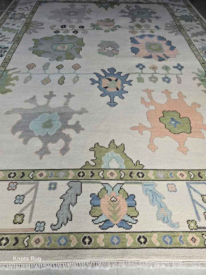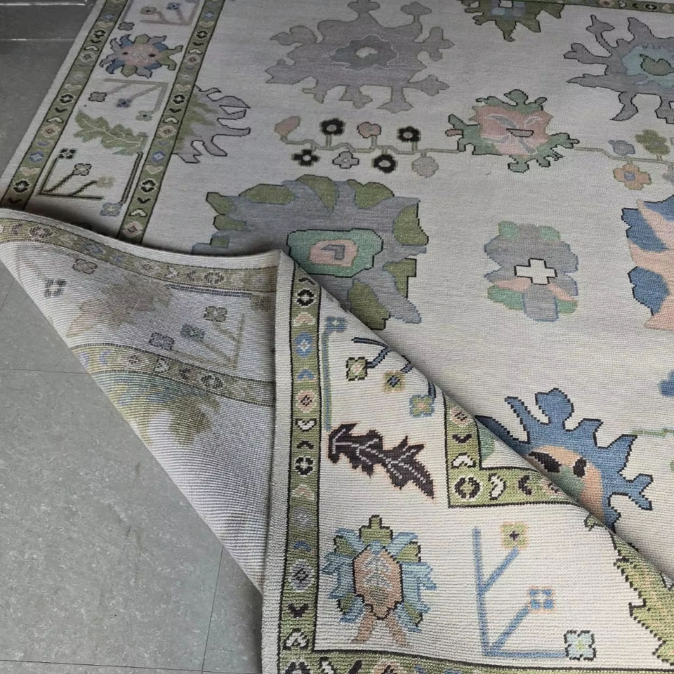 พรมแบบทนต่อการออกแบบของ oushak:พรมผ้าถักด้วยมือที่ทันสมัยขนาด10X14ผ้าถักด้วยมือสีกรมท่า
