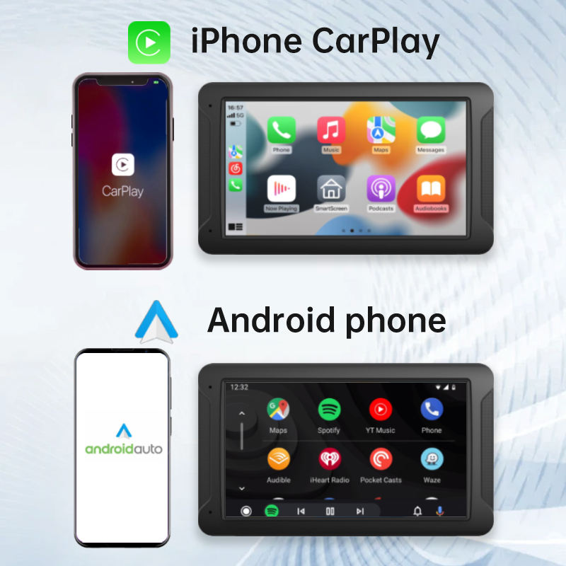 CarPlay จอแสดงผลรถยนต์หน้าจอ7นิ้วทัชสกรีนรถยนต์ไร้สายระบบแอนดรอยด์อัตโนมัติ AUX FM GPS นำทาง256GB การ์ด TF MAX