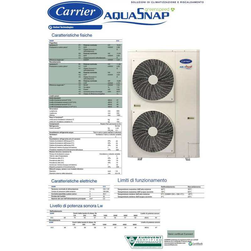 เครื่องทำความร้อนอินเวอร์เตอร์ Carrier Aquasnap Plus 12 กิโลวัตต์ รุ่น 30AWH012XD ระบบทำความร้อนภายในบ้าน ไม่มีโมดูลไฮโดรนิก