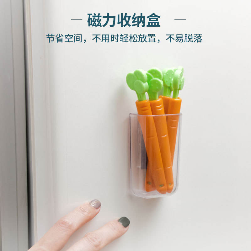 กล่องเก็บของแบบคลิปหนีบรูปทรงแครอท 5 ชิ้น สำหรับถนอมอาหาร พร้อมฝาปิดแบบคลิป ออแกไนเซอร์สำหรับตู้เย็น