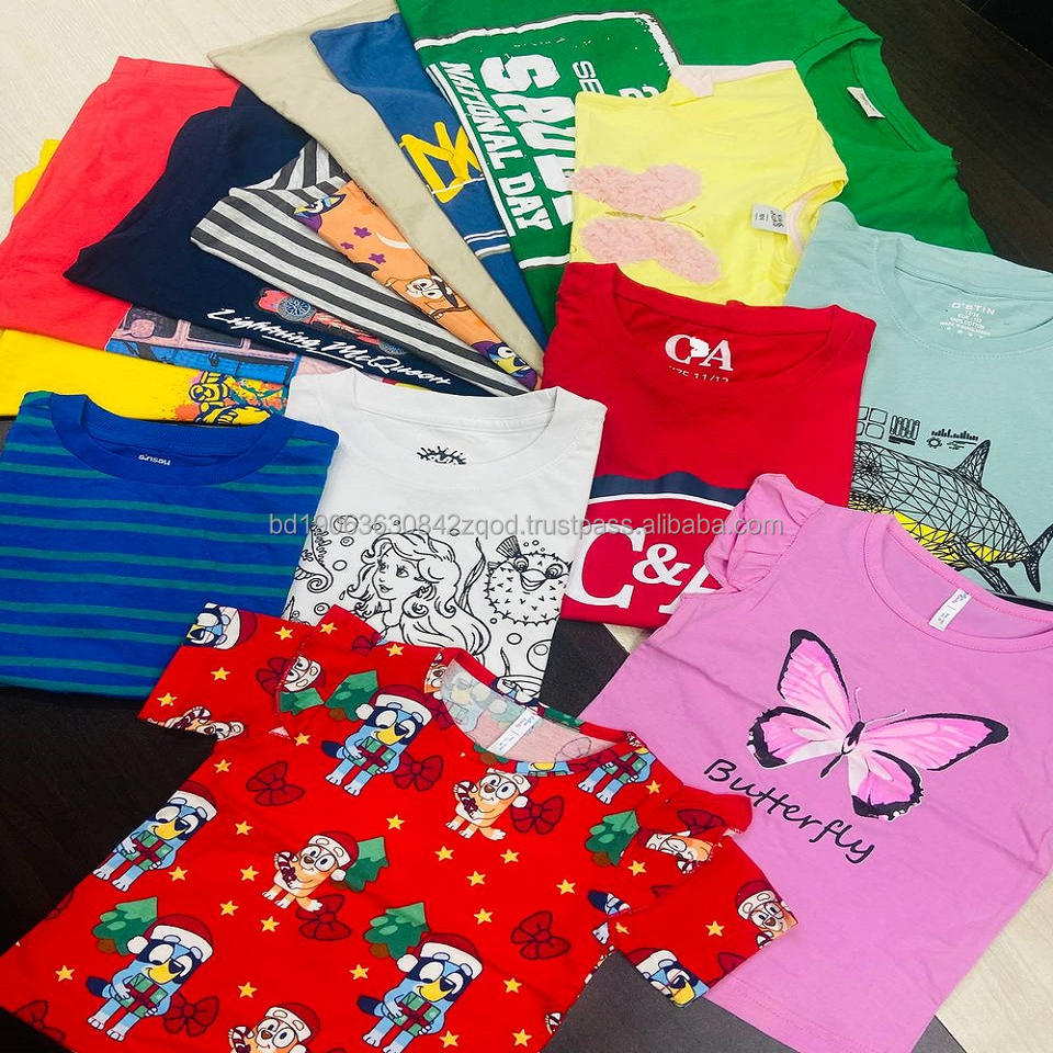 เสื้อยืดผ้าฝ้ายพิมพ์ลายสำหรับเด็กทารกและเด็กโต คอลเลคชั่นซัมเมอร์ สินค้าเกินจำนวน เสื้อยืดและเสื้อท่อนบนหลากสีสำหรับเด็กหญิงและเด็กชาย บรรจุกล่องแบบคละ