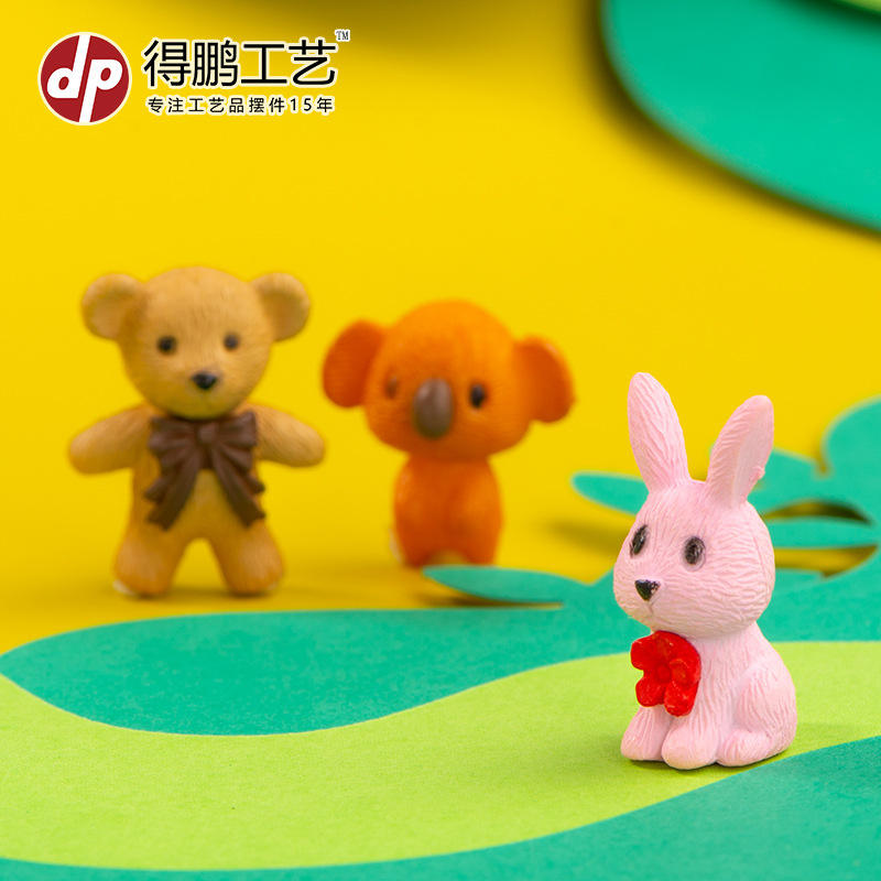 ตุ๊กตาสัตว์การ์ตูนขนาดเล็ก กระต่ายสีชมพู กระต่ายสีขาว โคอาล่าสีเหลือง ผลิตด้วยวิธีฉีดขึ้นรูป ของตกแต่ง