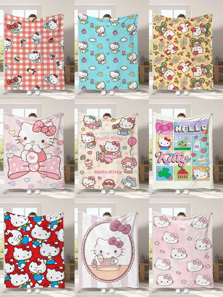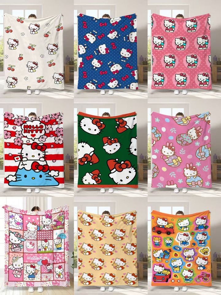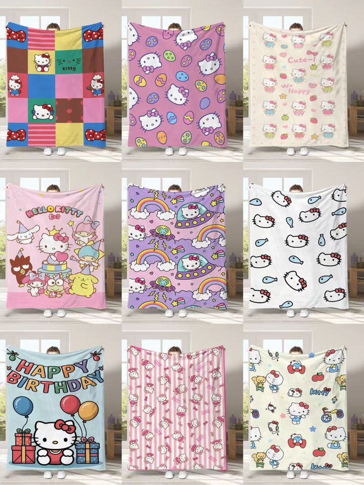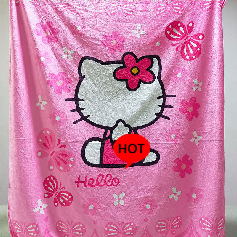 ผ้าห่มการ์ตูนเนื้อนุ่ม โพลีเอสเตอร์ คาวาอี้ ลายเคที ผ้าฟลีซเนื้อนุ่ม ผ้าห่มเด็กสีชมพู สำหรับเดินทาง