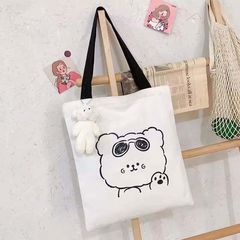 กระเป๋าผ้าแคนวาสลายการ์ตูนพิมพ์ลายตัวอักษรแบบสบายๆ สะพายไหล่หรือถือได้ พร้อมโลโก้พิมพ์ตามสั่ง