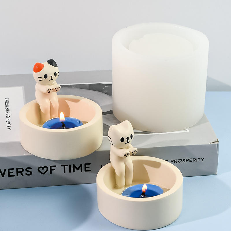 Cartoon Cat Candle Molder Aromatherapy Candle Mold Cute Cat Candle Decoration Mold