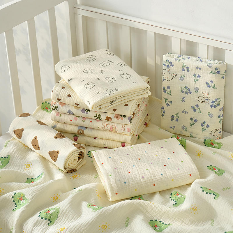 ผ้าห่มห่อตัวเด็กทารกแบบสองชั้น ผ้าเครปเนื้อนุ่มสบาย ลายการ์ตูน ผ้าฝ้าย สำหรับห่อตัว นอนหลับสบาย