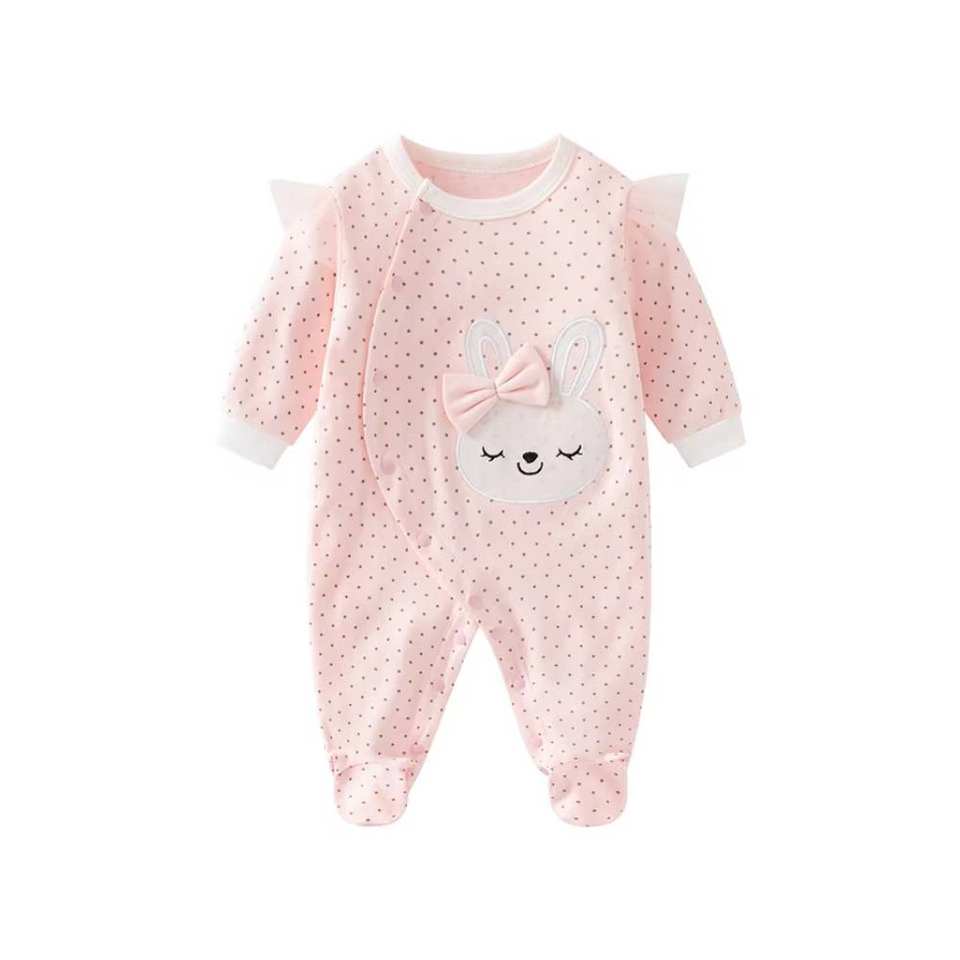 จั๊มสูทแขนยาวผ้าฝ้ายพิมพ์ลายกระต่ายน่ารักการ์ตูนสำหรับเด็กผู้หญิงทารกแรกเกิดชุดนอนเด็กทารกเด็กวัยหัดเดิน
