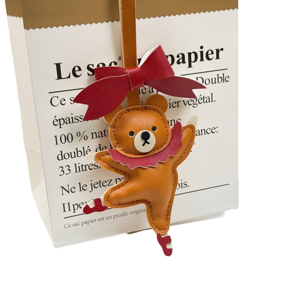 กระเป๋าหนัง PU ลายหมีเต้นการ์ตูนพวงกุญแจน้ำหนักเบาพร้อมสายคล้องในรถสำหรับการจัดระเบียบกระเป๋าเป้สะพายหลัง