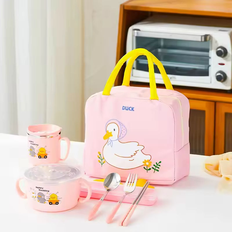 ชามอาหารพลาสติกดีไซน์การ์ตูน ชามสแตนเลสสำหรับเด็ก ชามพลาสติกสำหรับเด็กปลอดสาร BPA พร้อมฝาปิด