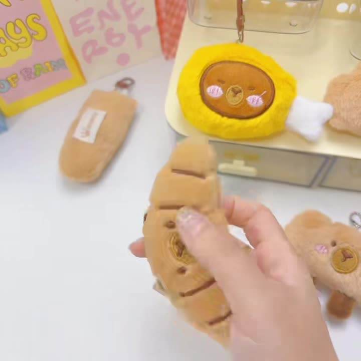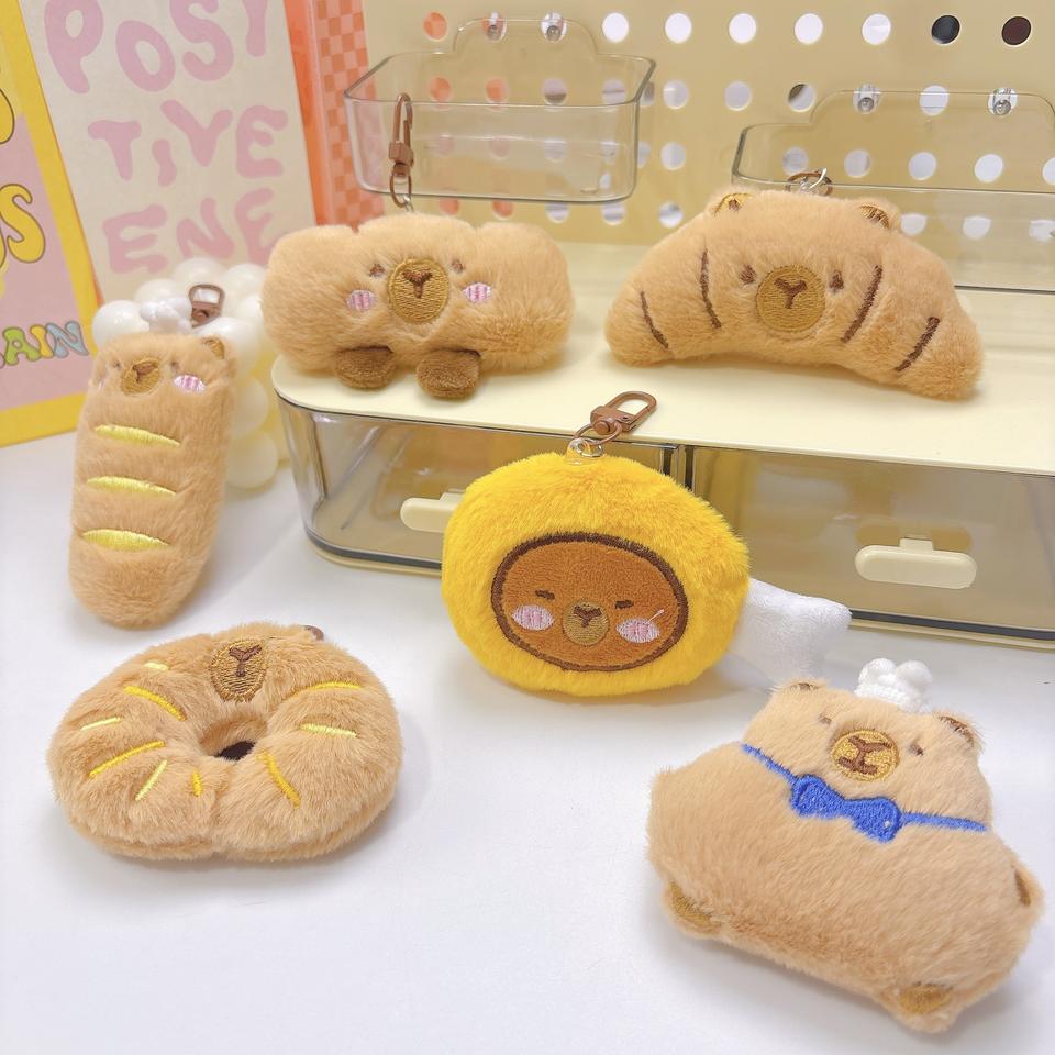 ตุ๊กตาการ์ตูน ขนมปัง ของหวาน อาหารจำลอง จี้ห้อยคอ ซิซิ หรือ คาปิปาลา ตุ๊กตา ไฟ LED ทองแดง ปลอดภัย พวงกุญแจ ของที่ระลึก