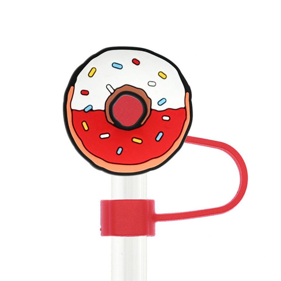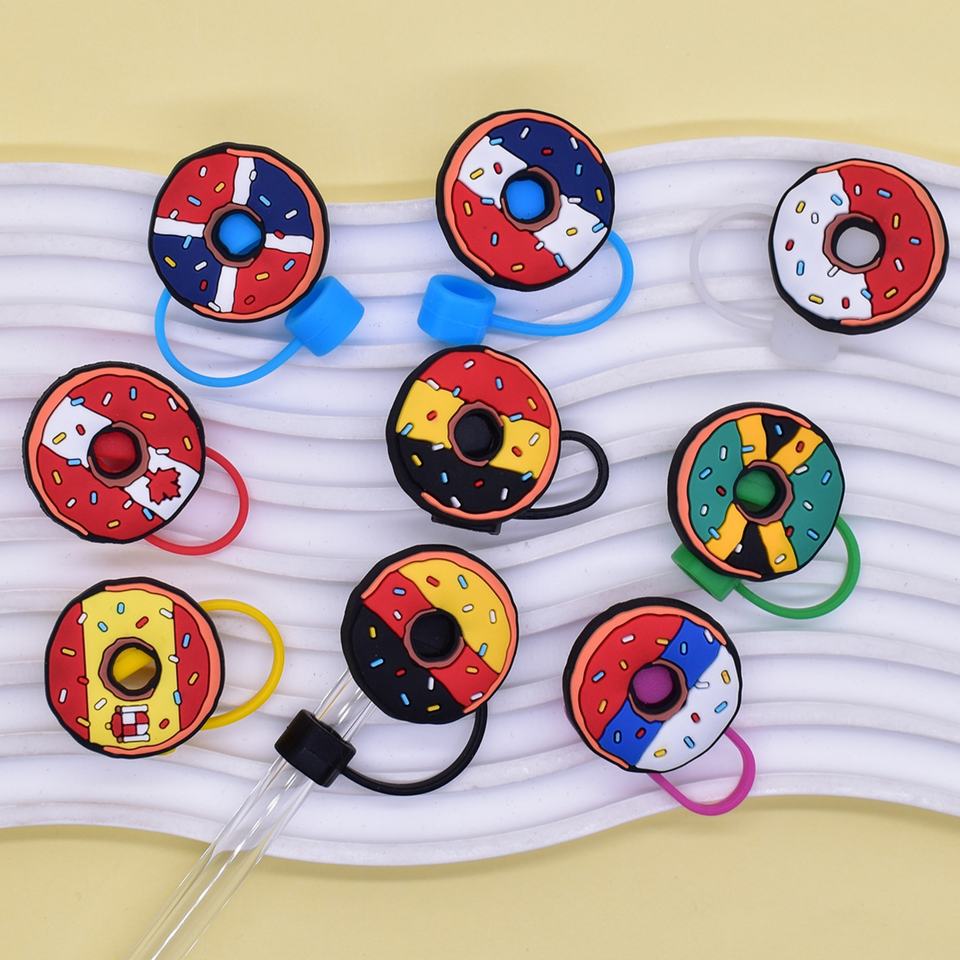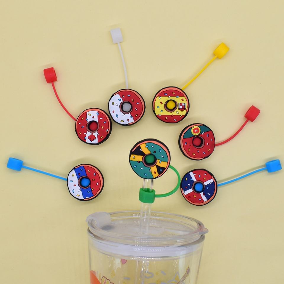 จุกปิดหลอดดูดลายการ์ตูนโดนัท ขนาด 10 มม. ของตกแต่งสร้างสรรค์ อุปกรณ์ตกแต่ง DIY อเนกประสงค์ ของขวัญส่งเสริมการขายสำหรับธุรกิจ