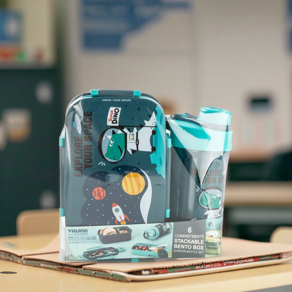 ชุดกล่องอาหารกลางวันสองชั้นปิดสนิทลายการ์ตูนพร้อมขวดน้ำสำหรับเด็ก