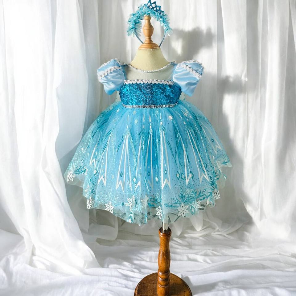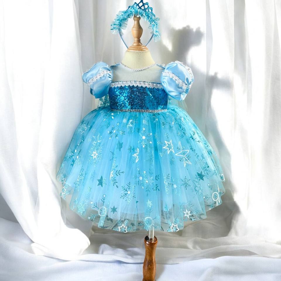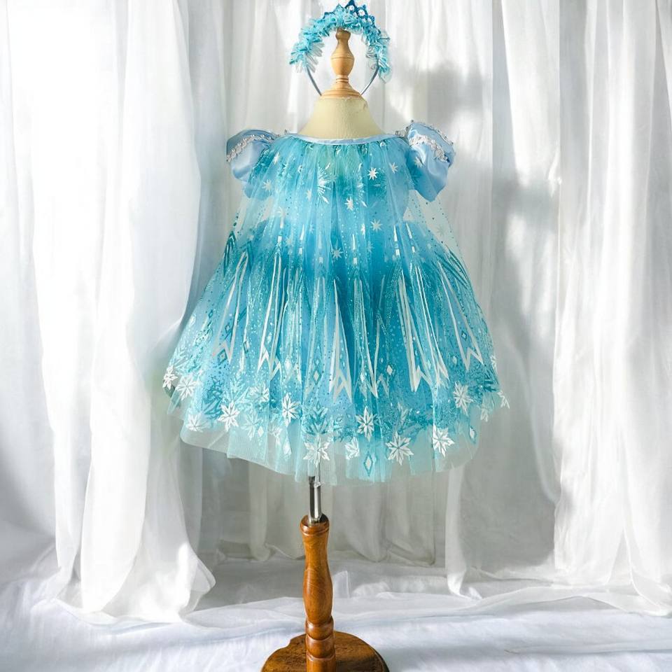Elsa Princess Cartoon Dress for Girls Best Price OEM ODM Made Vietnam Short Party Dress Big Train for All Four Seasons for