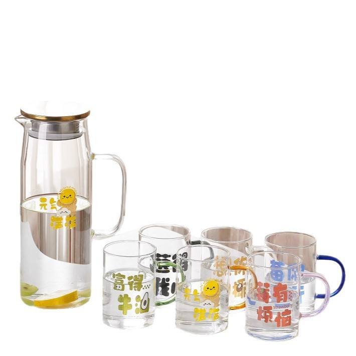 ชุดเหยือกน้ำแก้วลายการ์ตูนพร้อมแก้วมีหูจับ สำหรับใช้ในบ้าน งานปาร์ตี้ คุณภาพสูง เหมาะสำหรับห้องนั่งเล่น