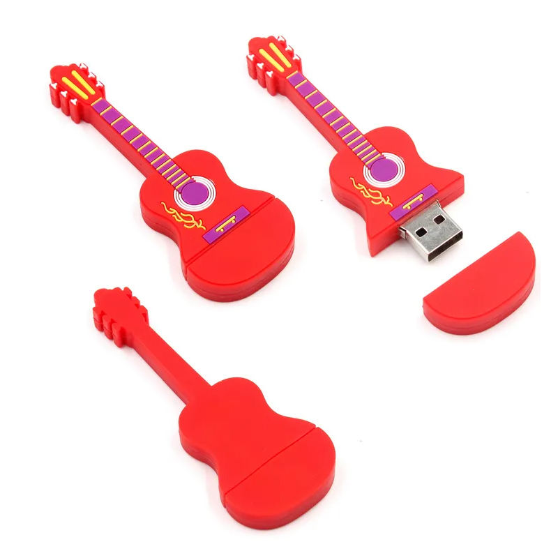 แฟลชไดรฟ์ PVC รูปกีตาร์การ์ตูนสีสันสดใสสำหรับคอนเสิร์ตสินค้าใหม่พร้อมอินเทอร์เฟซ2.0และ3.0รับประกัน1ปี