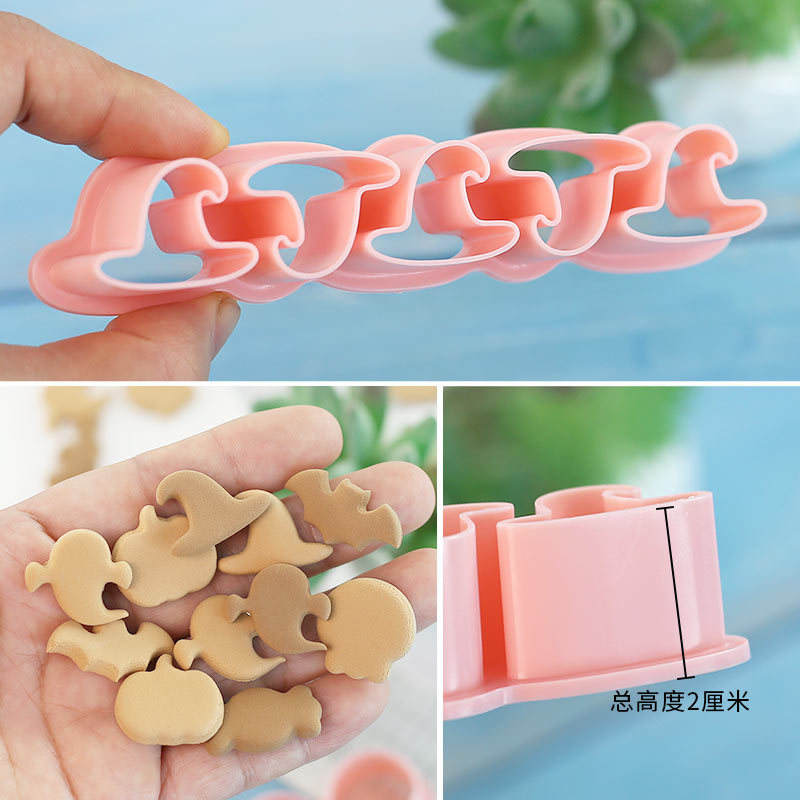 แม่พิมพ์อบ3D รูปการ์ตูนสำหรับวันฮาโลวีนชุดแม่พิมพ์พลาสติกสำหรับตัดและตัดคุกกี้ผีฟักทองขนาดเล็ก