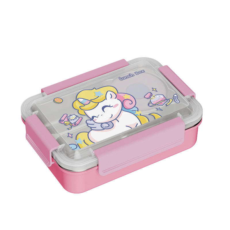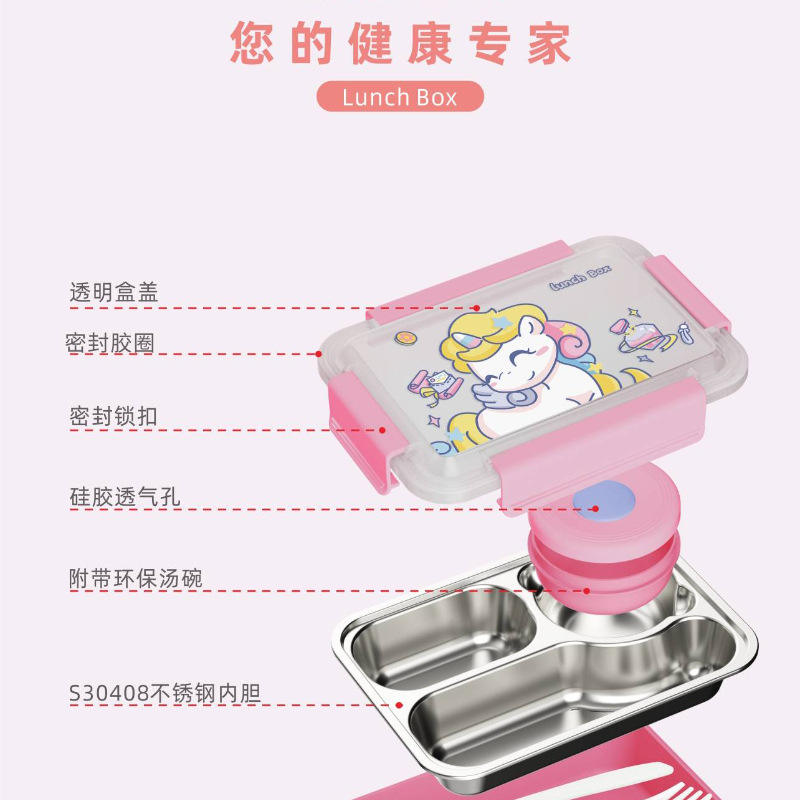 กล่องข้าวเด็กการ์ตูน S30408 สแตนเลสแบบแบ่งช่องพร้อมชามซุปสำหรับเด็กนักเรียน