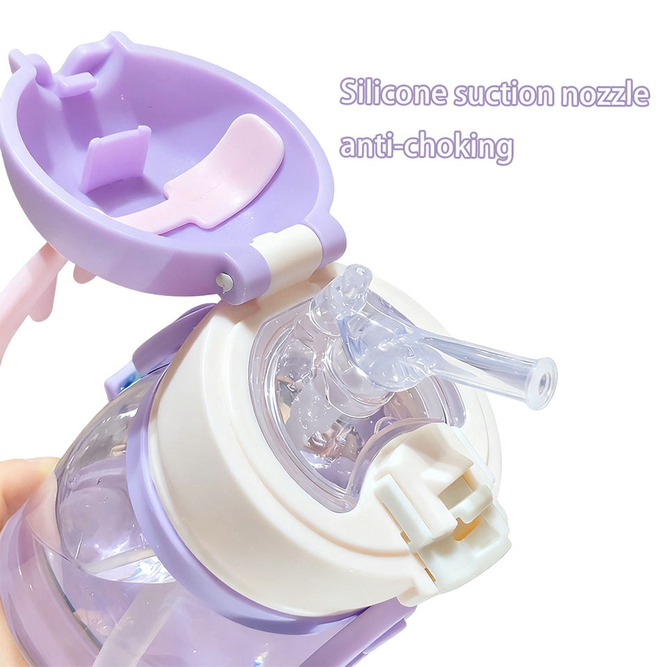 ขวดน้ำลายการ์ตูนสำหรับเด็กเดินทางไปโรงเรียนหรือเล่นกีฬา & กลางแจ้งขวดน้ำขนาด500มล. พร้อมหลอดดูดฝาปิดแบบป๊อปอัพ