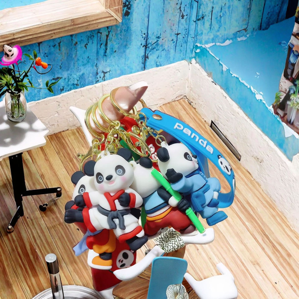 พวงกุญแจรูปการ์ตูนคังฟูแพนด้า 3 มิติ ทำจากยางผสมโลหะ ปลอดสารพิษ ใส่เหรียญได้ เป็นมิตรกับสิ่งแวดล้อม ของขวัญจี้ห้อยรูปตุ๊กตาเทควันโด