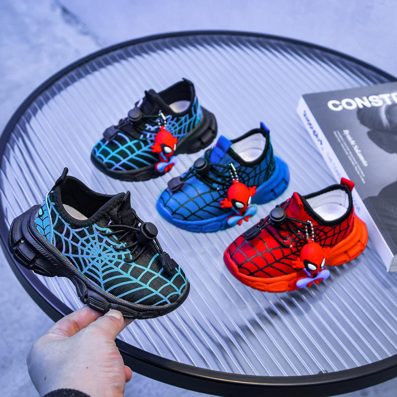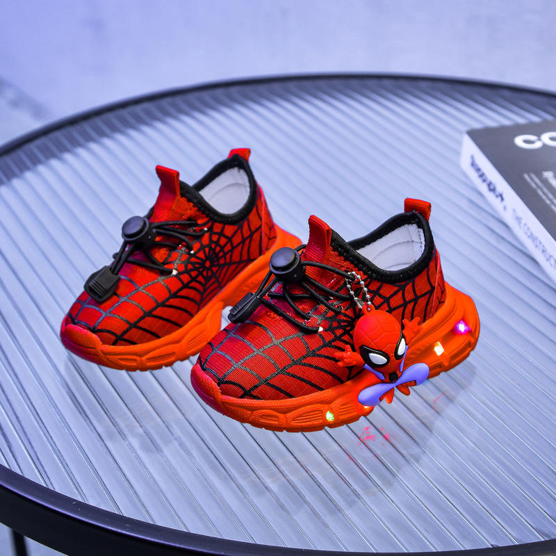 รองเท้าวิ่งสำหรับเด็กมีไฟลายการ์ตูนพื้นรองเท้านุ่มระบายอากาศได้ดีพื้นรองเท้าแบบสวมสำหรับเด็กผู้ชายเด็กผู้หญิงกันลื่นขนาดเล็กขนาดกลางมีไฟกะพริบ