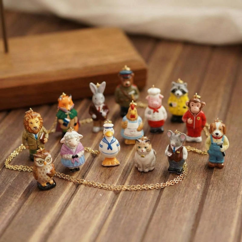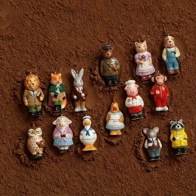 จี้ไทเทเนียมรูปการ์ตูนสัตว์น้อย เชฟหมู สิงโตครู หมีน้อย ตำรวจ สำหรับทำสร้อยคอ DIY