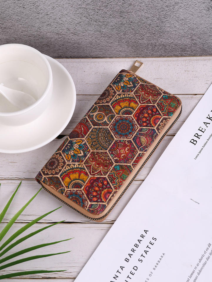 กระเป๋าสตางค์ผู้หญิงแบบยาวทำจากหนังไม้ก๊อกลายการ์ตูนผลิตจากวัสดุธรรมชาติ