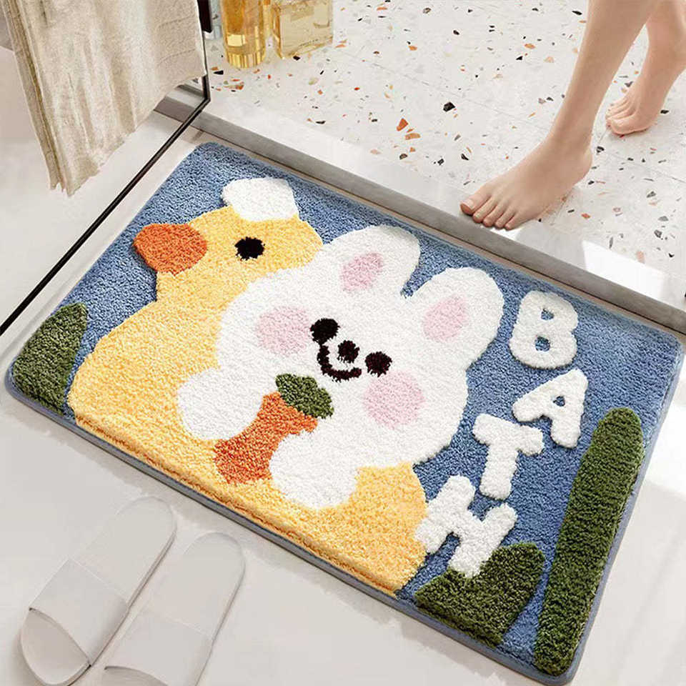 พรมเช็ดเท้าไมโครไฟเบอร์ลายการ์ตูน รูปทรงสี่เหลี่ยมผืนผ้า ซึมซับน้ำได้ดี กันลื่น สำหรับห้องน้ำ ห้องนอน ทางเข้าบ้าน